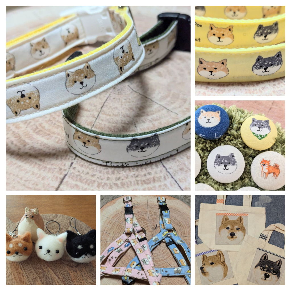 首や身体に負担の少ない、布製の柔らかい首輪やハーネス、リードです