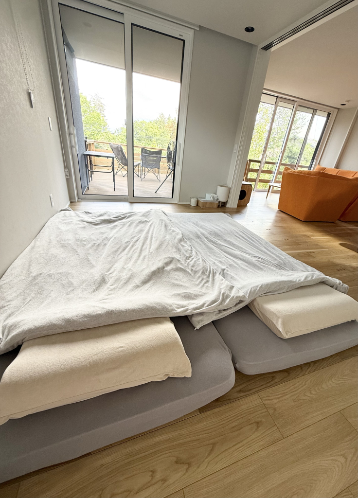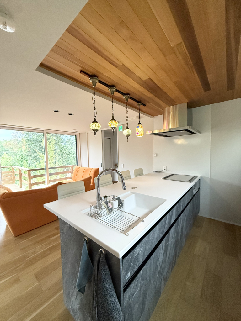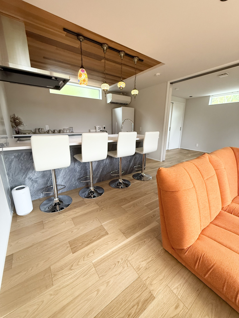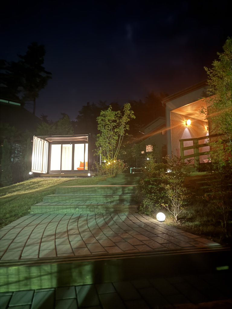 長野県安曇野市の豊かな自然に囲まれた閑静な温泉別荘地の一角にある、約1000平米の敷地丸ごと貸し切り、完全非対面・非接触・無人チェックインの宿泊施設です。
